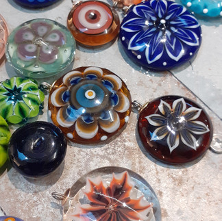 La première formation portait sur la création de perles cabochons avec des motifs floraux délicats. J’ai appris à travailler avec plus de rigueur et de précision, à superposer les couches de verre pour obtenir des détails subtils et à mieux gérer la fusion des couleurs. Floriane Lataille nous a guidés pas à pas pour acquérir la maîtrise nécessaire à ces créations minutieuses.